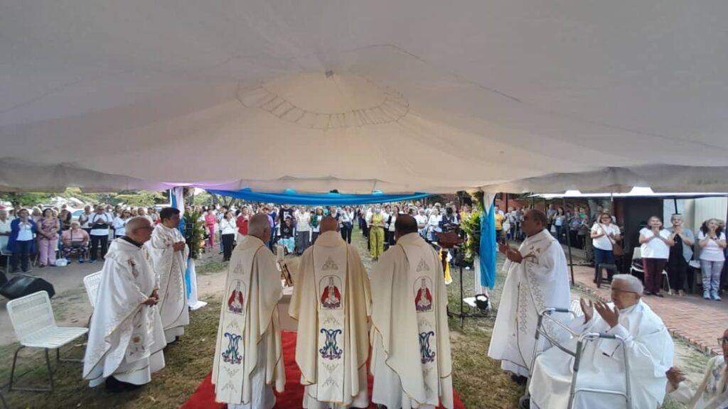 La eucaristía se llevó a cabo en el atrio del Santuario Diocesano ubicado en el Hospital del Seguro social Dr. Patrocinio Peñuela Ruiz, cuya festividad religiosa se extiende en todo el país por la gran devoción al médico venezolano.