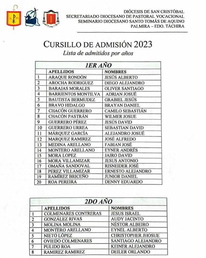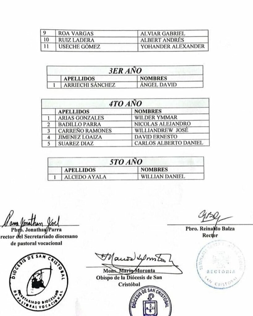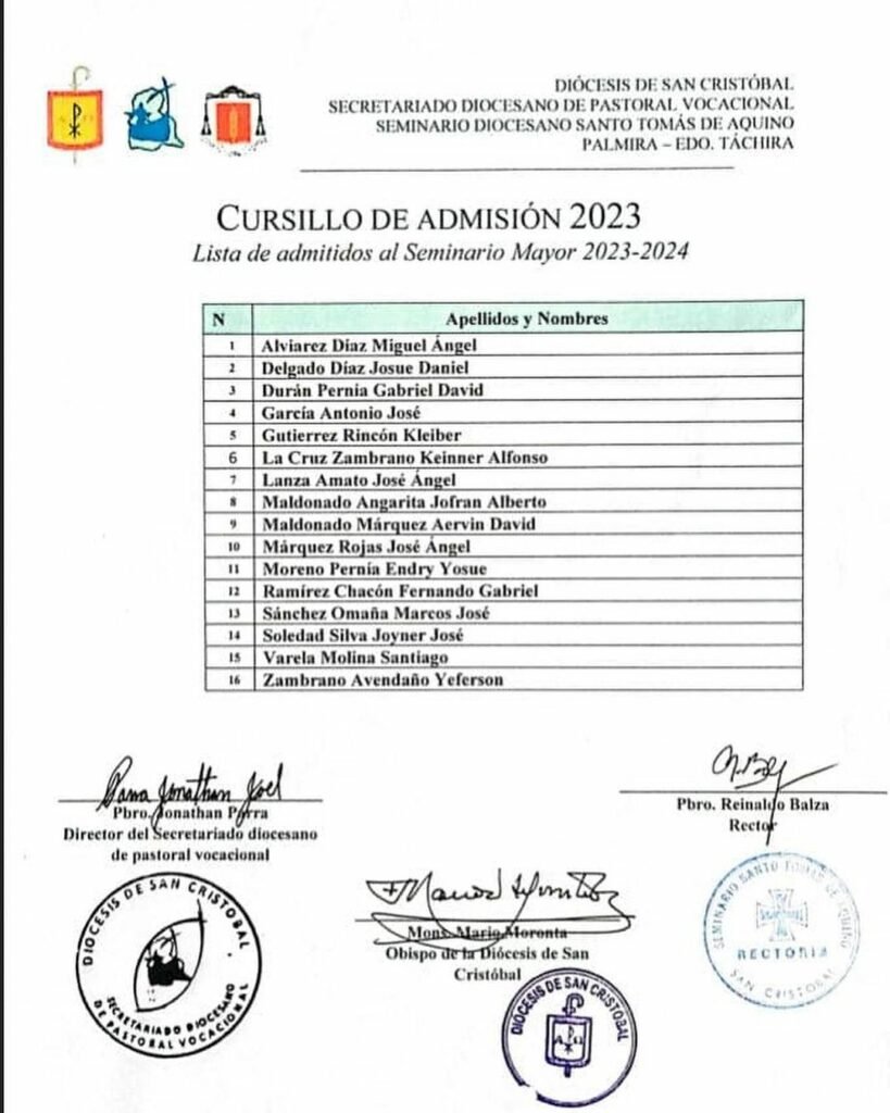 Conozca quiénes son los jóvenes admitidos al Seminario Diocesano Santo Tomás de Aquino