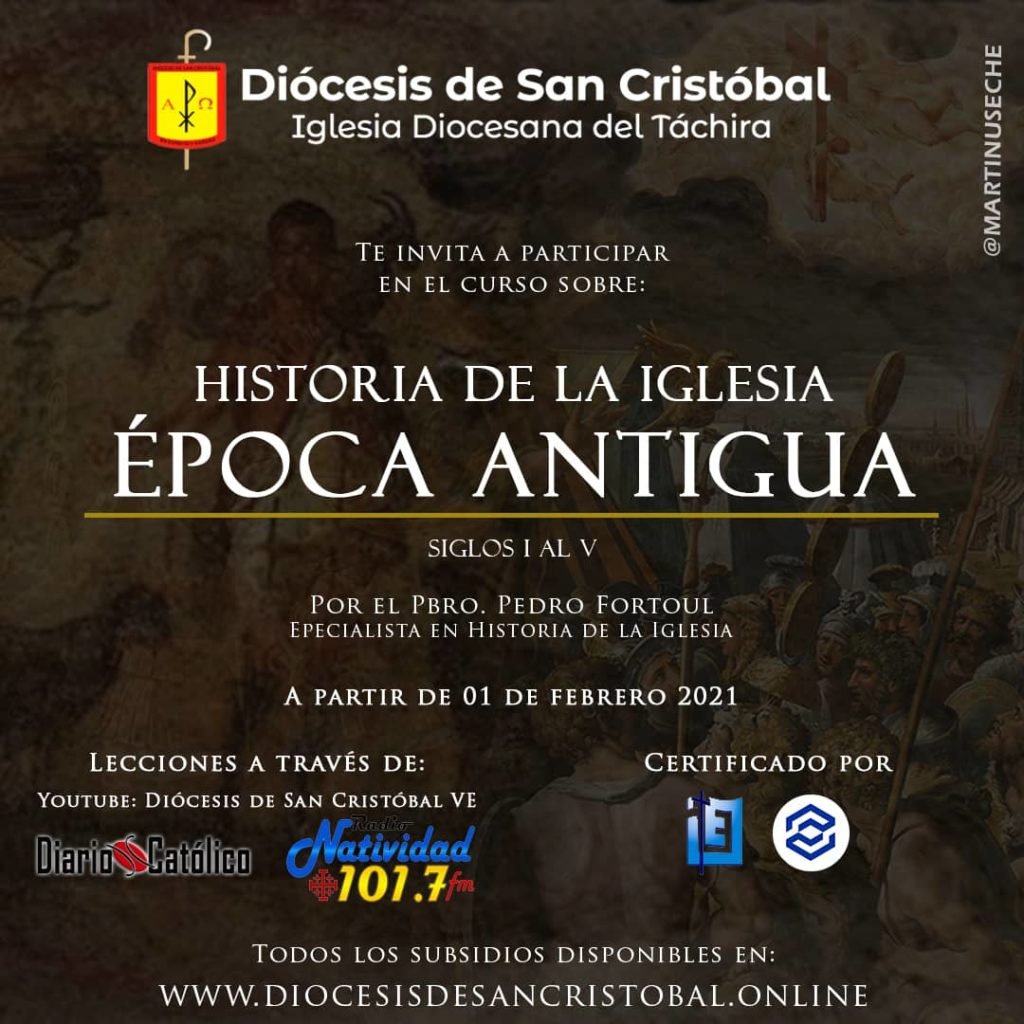La Diócesis de San Cristóbal ofrecerá curso sobre historia de la Iglesia época antigua desde el siglo I hasta el V. Dirigido por el sacerdote especialista en historia de la Iglesia Pbro. Pedro Fortoul.