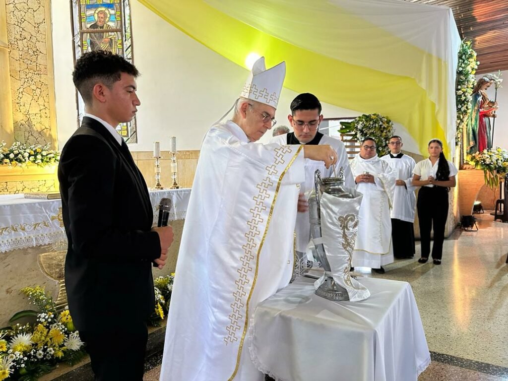 Durante la ceremonia, se bendijeron los aceites destinados para ungir a los enfermos y catecúmenos. Asimismo, se consagró el Santo Crisma utilizado en la administración de los sacramentos.
