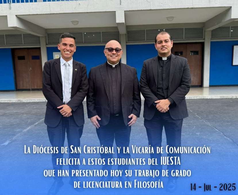 La Vicaría de Comunicación felicita a los estudiantes de licencia en Filosofía y licencia en Teología del Instituto Universitario Eclesiástico Santo Tomás de Aquino por la aprobación de sus trabajos monográficos y trabajos de grado.