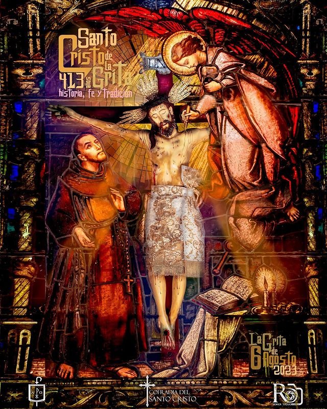Para este año 2023 los afiches del Santo Cristo del rostro Sereno y de su madre bajo la advocación de Los Ángeles, están inspirados en los vitrales que adornan cada uno de sus templos.