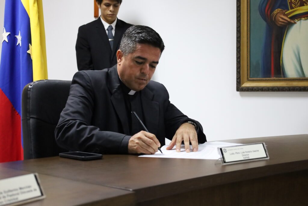 Por su parte, Mons. Dr. Mario del Valle Moronta Rodríguez, Obispo de San Cristóbal y Gran Canciller de la Universidad Católica del Táchira, señaló la importancia de “un acto extraordinario dentro de lo ordinario” pues con este convenio, cada institución involucrada da cumplimiento a su misión específica, mediante la búsqueda de caminos que permitan avanzar juntos en la necesaria atención pastoral “Este convenio se realiza con el ánimo de promover la formación del Pueblo de Dios en los temas propios de la espiritualidad, el desarrollo humano integral de todos sus integrantes y el progreso regional y nacional” dijo el Obispo.