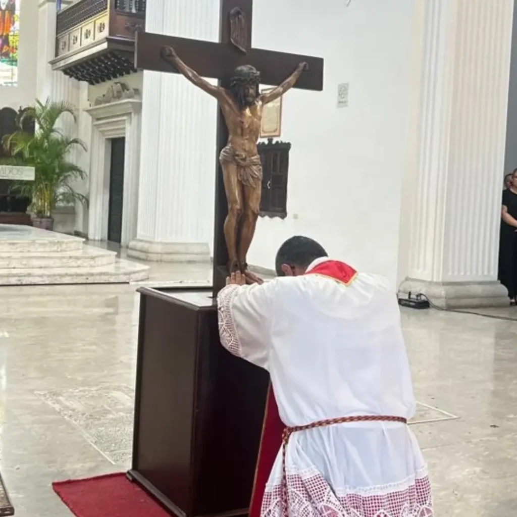 En el corazón del Triduo Pascual, la Iglesia Sagrario Catedral de San Cristóbal se sumergió en un silencio sagrado. A las 3:00 p.m., hora de la muerte del Redentor, el VI Obispo de nuestra Diócesis, Mons. Lisandro Rivas, presidió la Solemne Celebración de la Pasión del Señor.