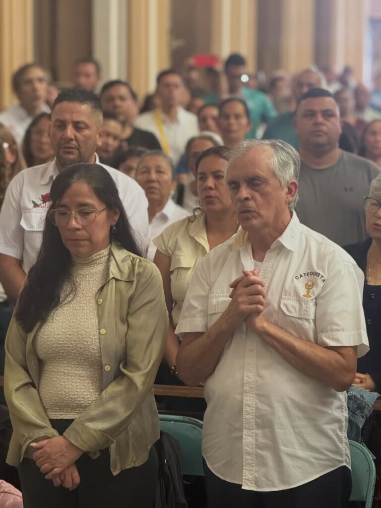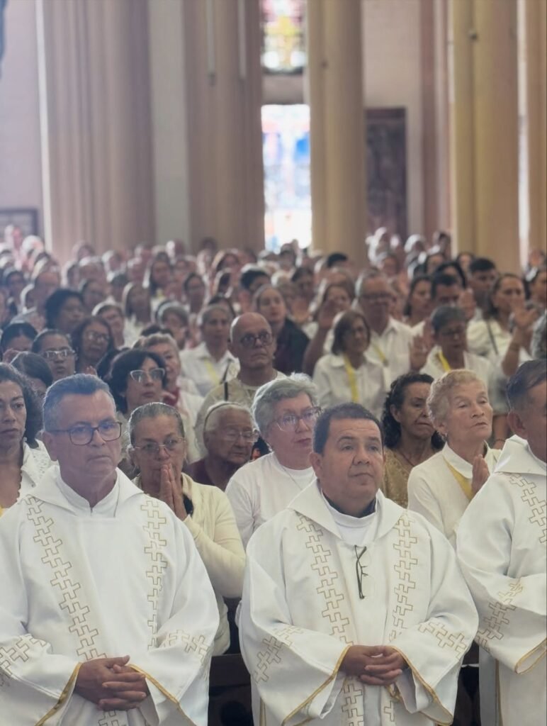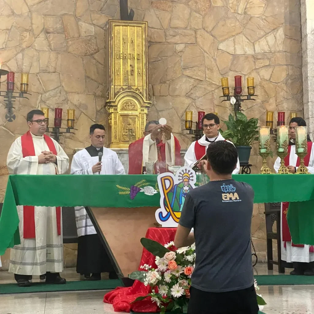 Una jornada de Pentecostés. La jornada inició con la alegría del recibimiento de coordinadores de grupos, movimientos y fraternidades, seguida de la Santa Misa presidida por Mons. Lisandro Rivas, quien, junto a cinco sacerdotes del presbiterio, bendijo el caminar de nuestros líderes.