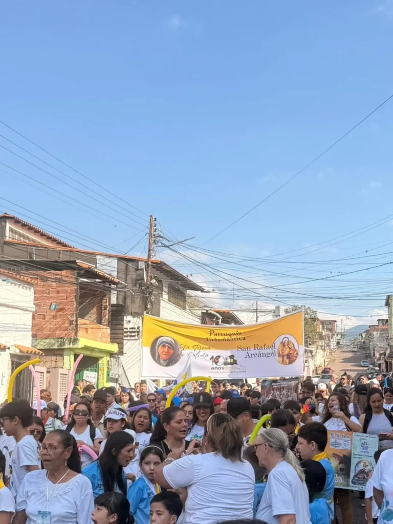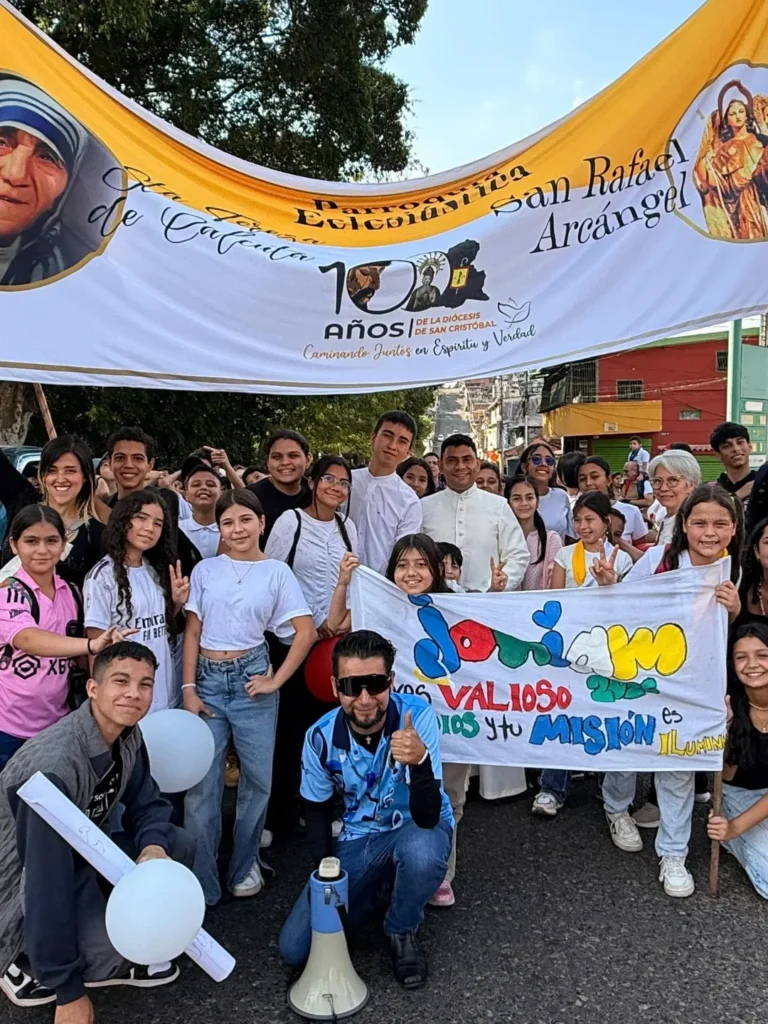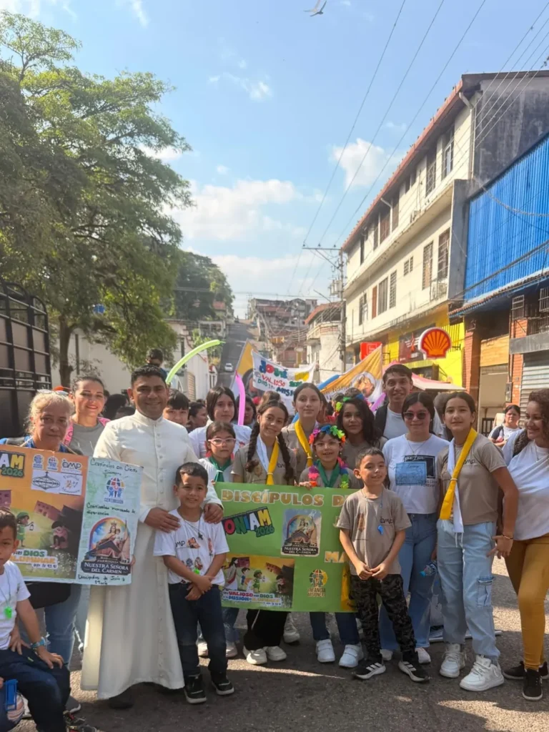 Caminata misionera. Las calles de La Ermita en la ciudad de San Cristóbal, se llenaron de colores, cantos y pancartas, siendo un testimonio público de que nuestra Iglesia está viva y en salida.