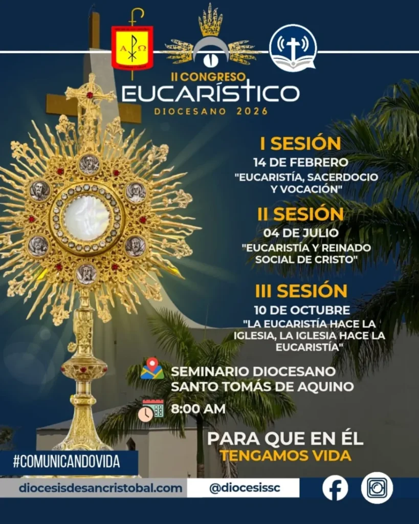 En el marco del Año Eucarístico de la Diócesis de San Cristóbal, la Iglesia local se prepara para su II Congreso Eucarístico, para el cual el sábado 14 de febrero de 2026, el Seminario Diocesano Santo Tomás de Aquino será sede para la realización de la primera sesión formativa.